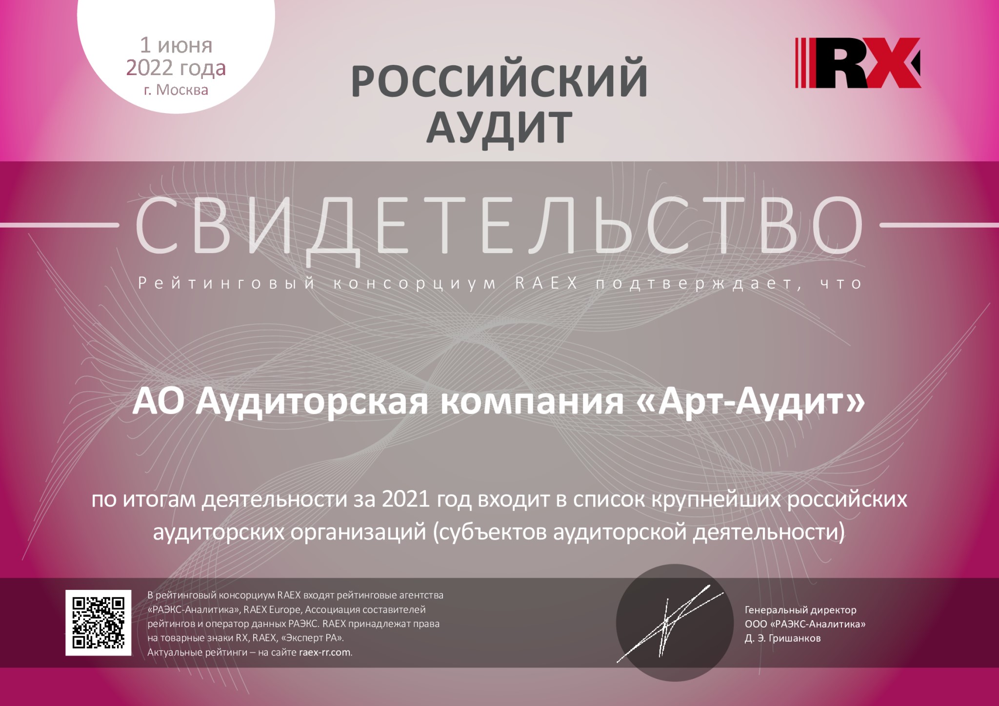 АО АК Арт-Аудит - рейтинг за 2022 год среди крупнейших аудиторских организаций